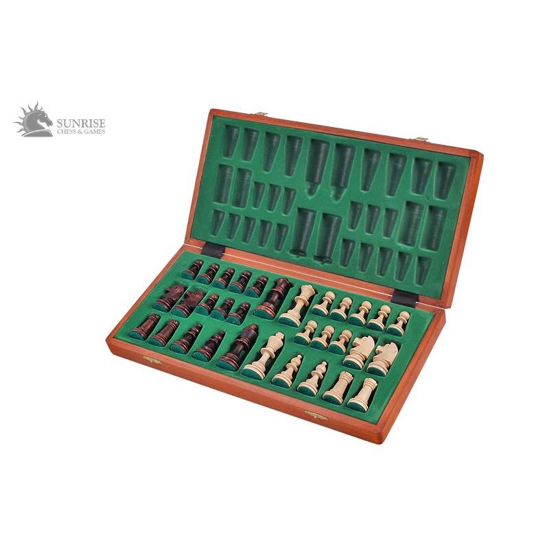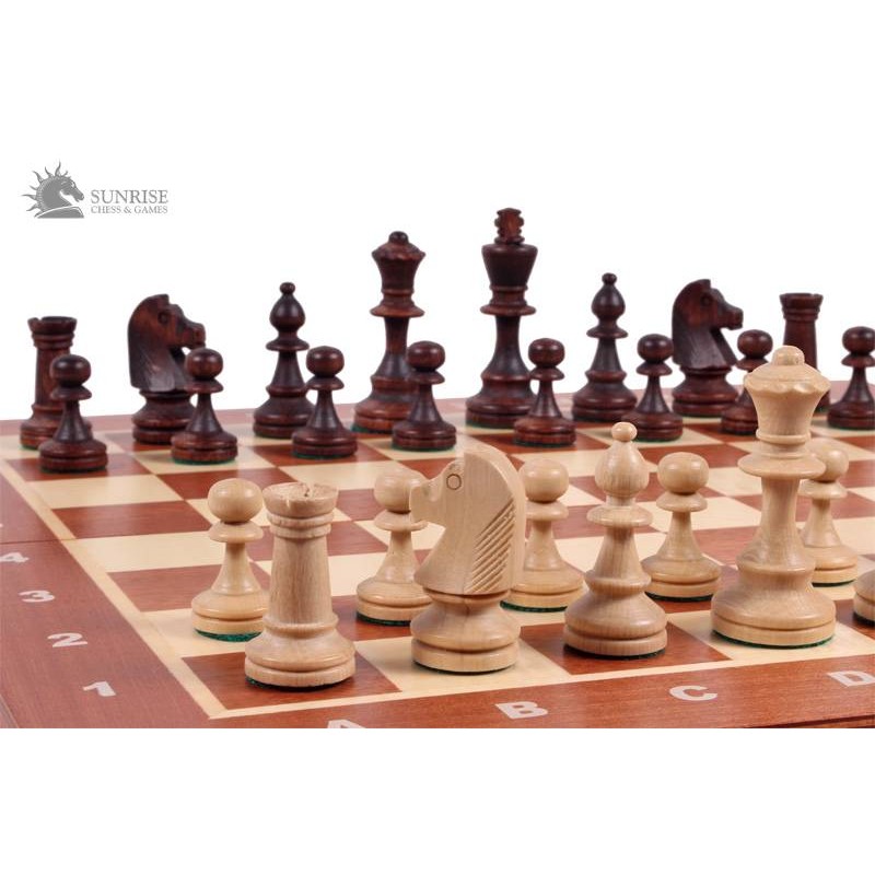 Z połączenia eleganckiej, intarsjowanej mahoniem i jaworem kasetki i profesjonalnych figur szachowych powstał unikalny komplet szachów turniejowych stworzony z myślą o najbardziej wymagających szachistach.