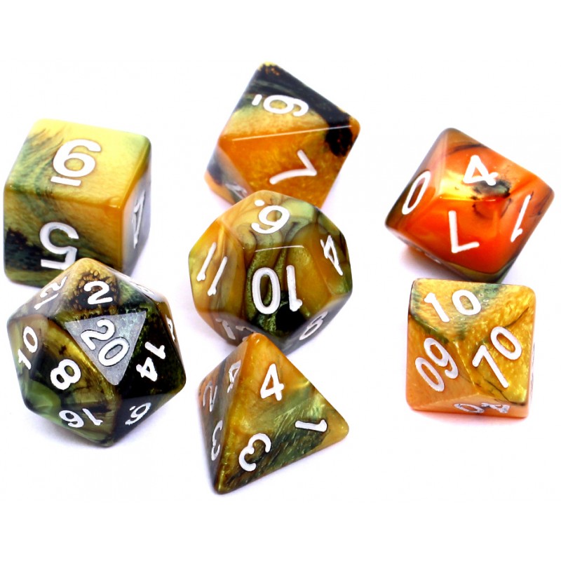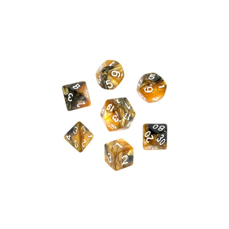 Komplet siedmiu dwukolorowych kości marki Rebel o unikalnym charakterze. Są to jedne z najtrudniejszych w produkcji kości, ponieważ wymagają bardzo uważnego zmieszania dwóch tworzyw o różnym stopniu zabarwienia. Przy produkcji tych kości wszystko może się zdarzyć. Niewłaściwe proporcje, zarówno barwnika, jak i dwóch tworzyw, mogą nieodpowiednio zabarwić daną partię produkcyjną. Tak samo groźne może być zbyt szybkie lub zbyt wolne ich mieszanie.