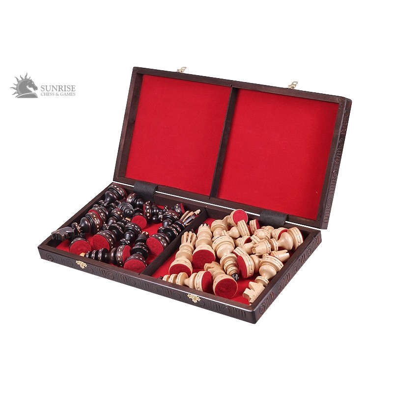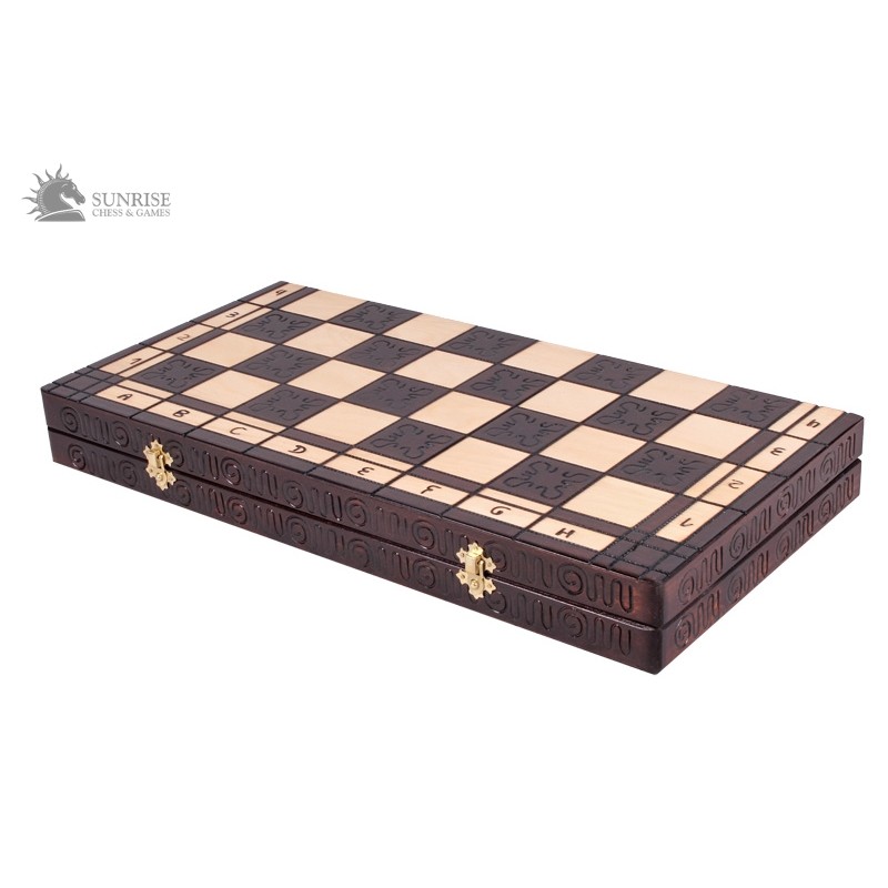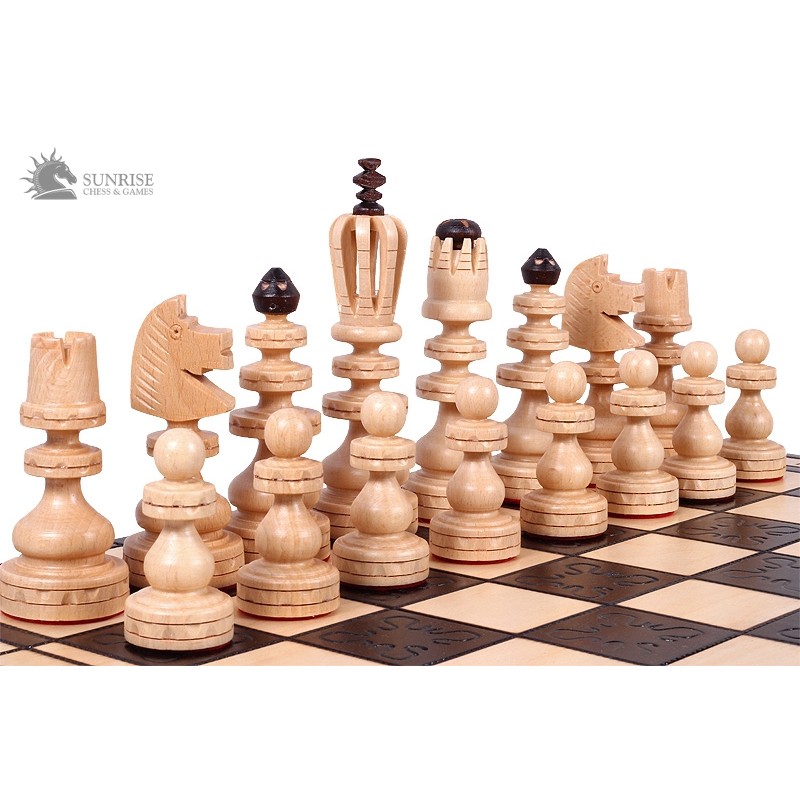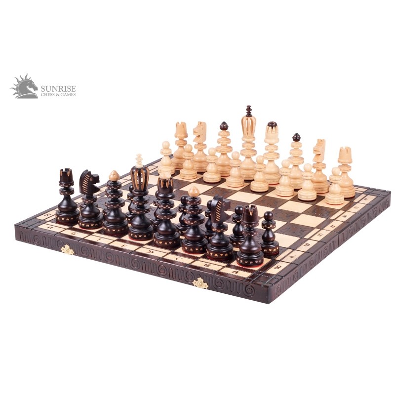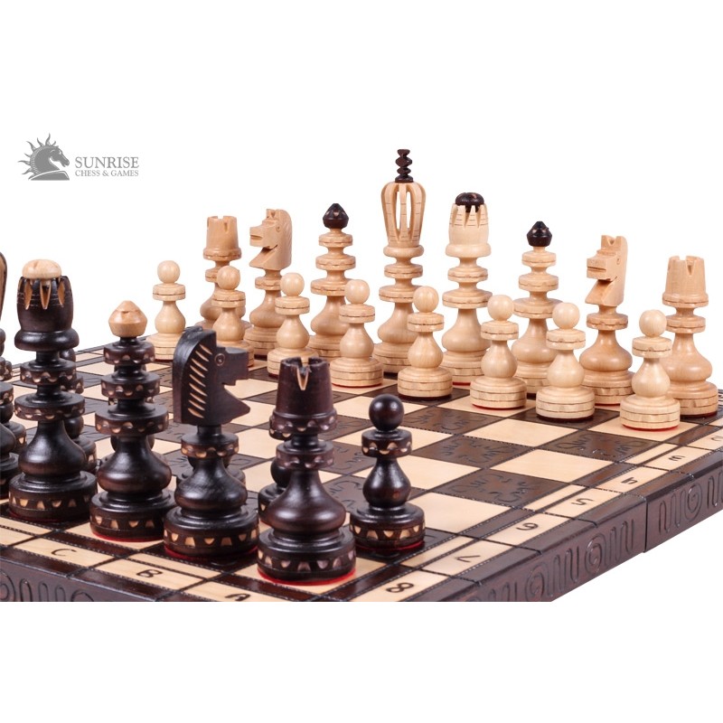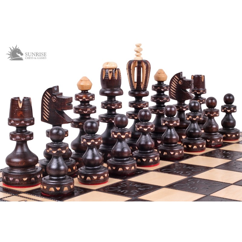 Szachy Roman są jednym z najlepiej sprzedających się większych kompletów szachowych z naszej dekoracyjnej oferty. Ręcznie wykonane figury zrobione są z drewna bukowego. Wypalana składana deska szachowa ma dwie komory wykończone wewnątrz filcową wkładką na figury.