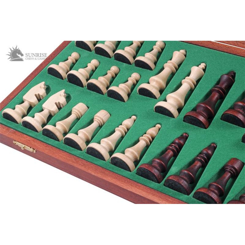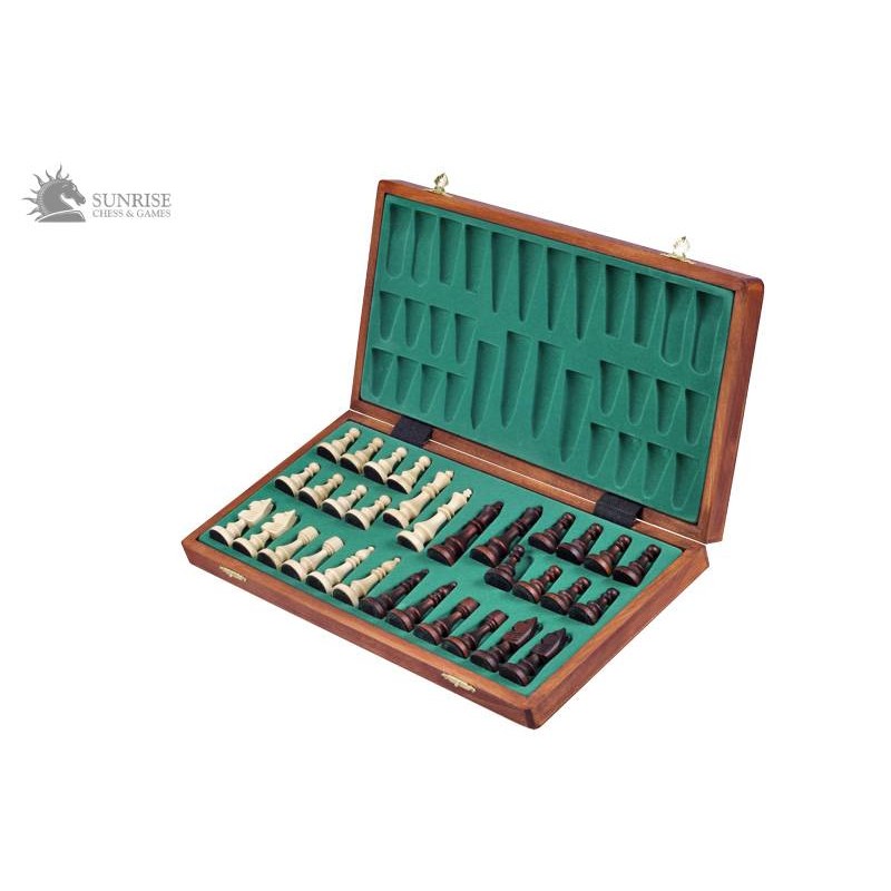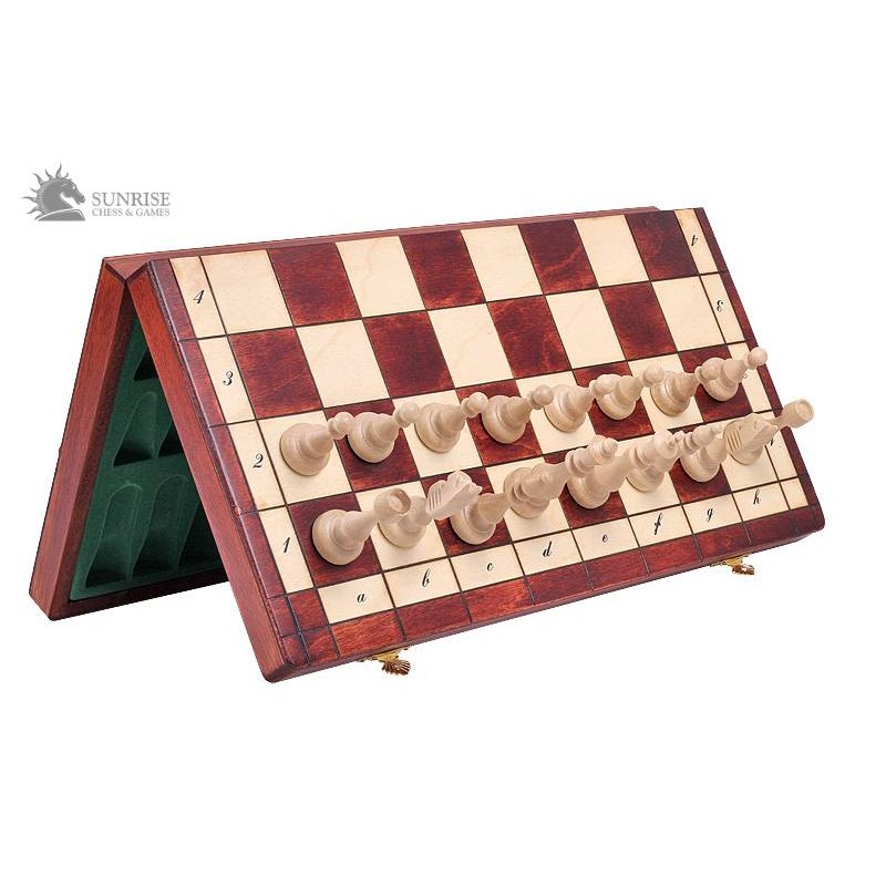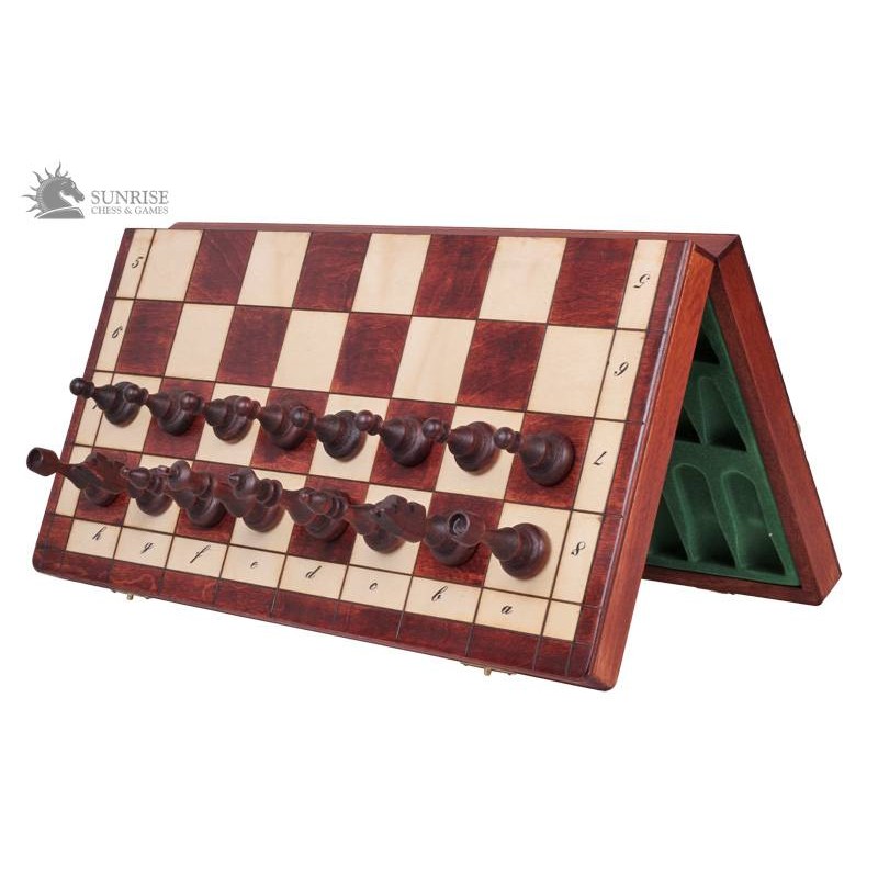 Są to większe szachy z naszej oferty szachów magnetycznych. Rozmiar deski wynosi 35x175 cm. Składana deska szachowa ma wewnątrz wkładkę na figury.