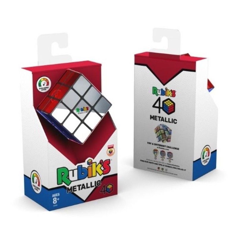 Kostka Rubika 3x3 Metalik 3028. Klasyczna kostka jest teraz dostępna w wersji premium. Kolory ścianek klasycznej kostki pozostają niezmienne, natomiast metaliczny kolor na kafelkach dodaje jej szlachetniejszego wyglądu. Posiada również nowy mechanizm, który powoduje płynniejsze i szybsze obracanie kostki. Zabawa kostką Rubika jest niezwykle wciągająca. Gra polega na klasycznym dopasowywaniu kolorów. Obracaj i przekręcaj boki kostki tak, aby każda z sześciu ścian miała tylko jeden kolor.