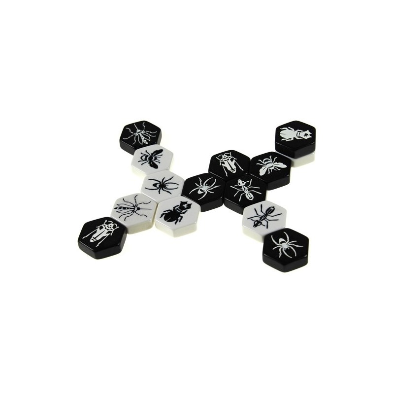 Rój jest grą dla dwóch graczy. Każdy gracz ma trzynaście płytek, przedstawiających siedem różnych owadów: pszczoła (królowa), żuk, konik polny, pająk, mrówka, biedronka i komar.