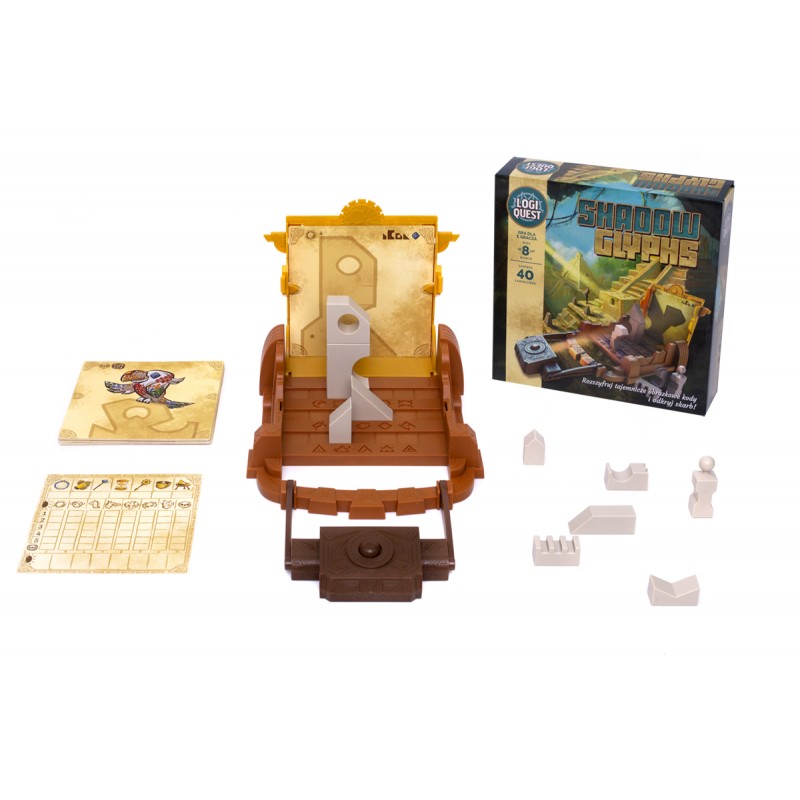 Logiquest: Shadow Glyphs to przygodowa gra logiczna, w której układasz bloki, tworząc cienie pasujące do wzorów na kartach zadań. Każda karta zadania pokazuje namalowany obrys lub wzór na ścianie wewnątrz starożytnej świątyni i leżące w pobliżu bloki.