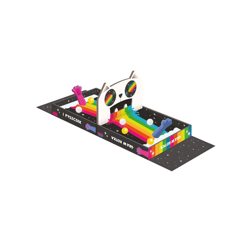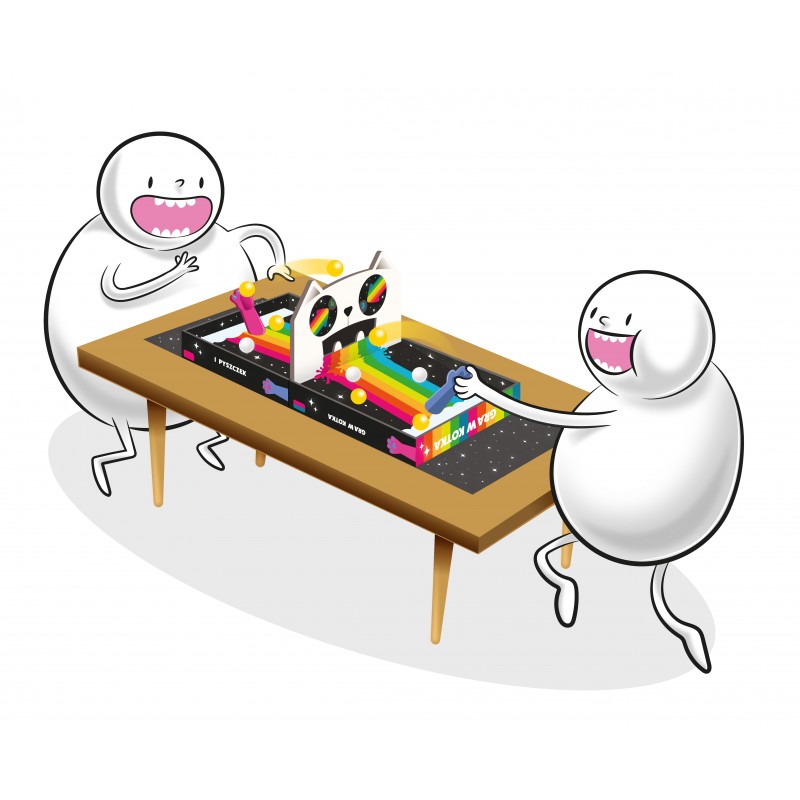 Gdy padnie sygnał rozpoczęcia gry, zacznij szybko ładować piłeczki po Twojej stronie planszy i wystrzeliwuj je w stronę przeciwnika. Użyj do tego swojej kociej łapki: umieść na niej piłeczkę, a następnie ją odciągnij i puść. Możesz strzelać żółtymi i białymi piłeczkami, ale rób to jak najszybciej! W tej grze nie ma tur, a punkt zdobywasz, gdy wstrzelisz przeciwnikowi jedną czarną piłeczkę, 3 białe lub 8 żółtych. Masz już 5 punktów? Gratulacje, jesteś zwycięzcą… przynajmniej do czasu kolejnej rozgrywki.