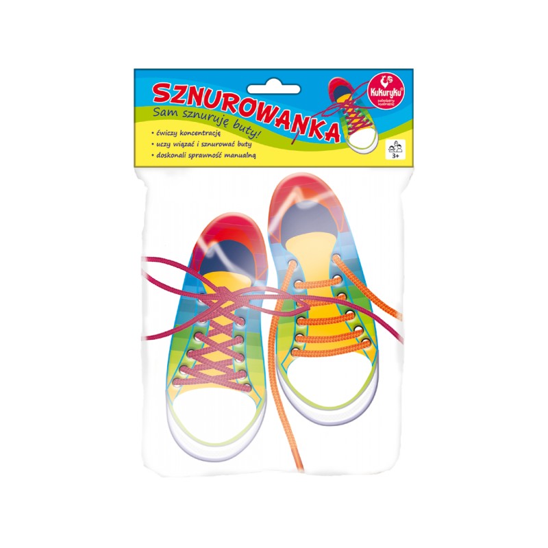 Zabawka ćwiczy koncentrację, uczy wiązać i sznurować buty oraz doskonali sprawność manualną.
