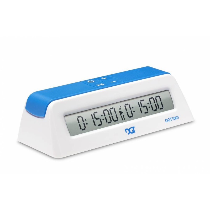 Elektroniczny zegar szachowy DGT 1001 w kolorze białym jest wyposażony w duży i przejrzysty wyświetlacz, jest przy tym prosty w obsłudze i klasyczny w swoim wyglądzie. DGT 1001 dzięki niewielkim rozmiarom jest łatwy w transporcie oraz łatwo jest go przechowywać. Waga zegara z baterią to niewiele ponad 100 gram! Największą jego zaletą jest jednak cena - dużo niższa niż cena większości dostępnych na rynku zegarów.