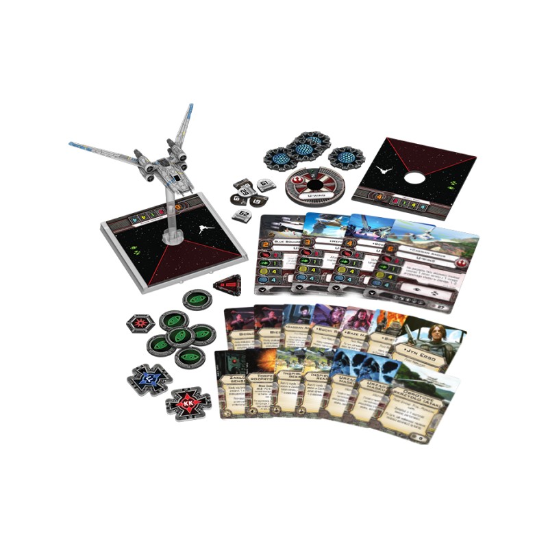 Rozszerzenie U-Wing to kolejny statek na dużej podstawce, przy którym znaleźć można cały zastęp świetnie wyszkolonych pilotów i rebelianckich członków załogi. Cztery karty statków i czternaście ulepszeń to nowe możliwości taktyczne i pierwsze wersje kart Jyn Erso i Cassiana Andora, a także kilku innych postaci, występujących w Łotrze jeden.